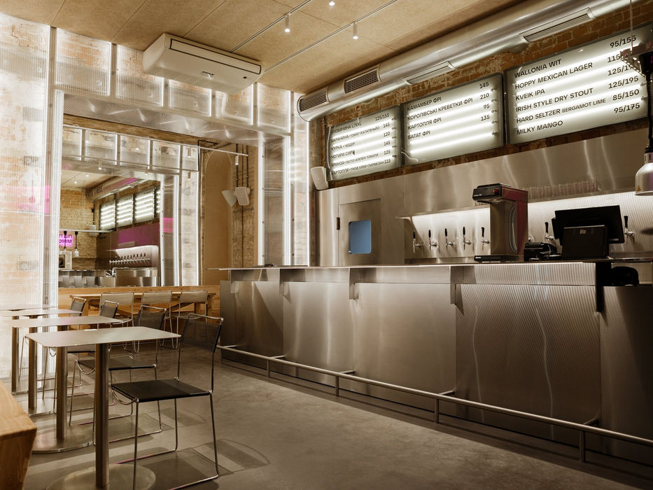 MINISTRY OF CHE is a restaurant adorned with modern neon colors, sleek steel accents, and exposed brick walls. This vibrant setting blends industrial aesthetics with urban sophistication, creating a chic and contemporary atmosphere. From minimalist furniture to strategic lighting, every detail enhances the restaurant's stylish appeal. All details are 100% custom made.